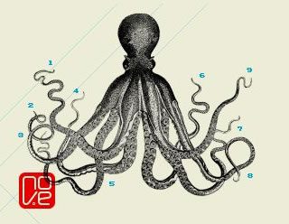 Descubro la web de Nove, un grupo de nueve nuevos cocineros gallegos. Allí leo que el secreto de su éxito está en mantener las raices gallegas de su cocina, pero vistiéndola de diseño. Curiosamente, el excelente diseño de su sitio web ha sido realizado por el director de arte francés Arnaud Mercier.
