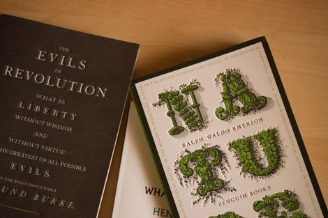 Acaban de llegarme unos cuantos libros de la serie Great Ideas de Penguin: los encargué aprovechando lo mucho que me gustaba el diseño que hizo David Pearson para esta colección. Me pongo con The Evils of Revolution.