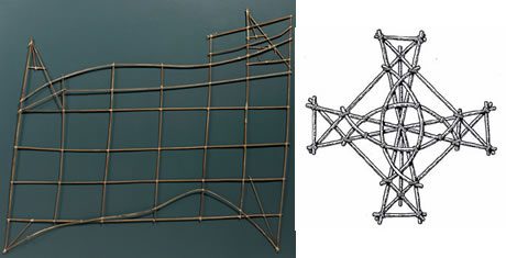Sin embargo, hay gente que se le da bastante bien. La fotografía de abajo muestra una carta de navegación polinesia: esos palos flexibles sirven para localizar las islas a partir de la observación del dibujo de las olas al chocar contra la costa. Tienen formas tan variadas que son sólo inteligibles para los navegantes concretos que las diseñaron. Por supuesto, también hay algo religioso difícil de entender para nosotros.