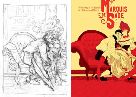 …Viendo los bocetos de Tomer Hanuka para ilustrar la portada de La Filosofía en el Tocador para Penguin Classics.