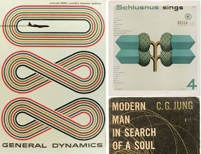 Hace poco descubrí una galería en flickr con muchos trabajos suyos, desde sus ilustraciónes técnicas para General Dynamics a diseño de colecciones de libros.